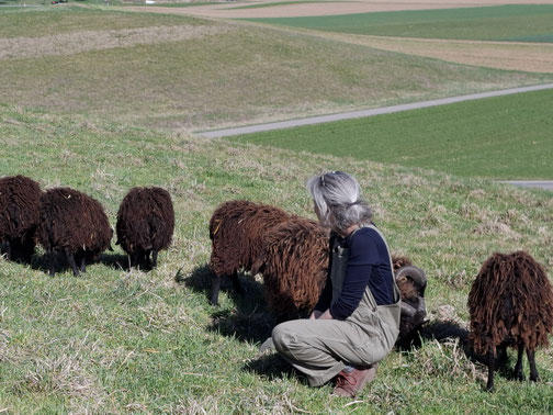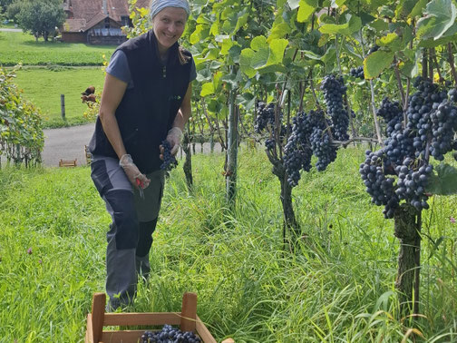 Petra ist eine Quereinsteigerin, mit ihren zwei gelernten Berufen als Goldschmiedin und Immobilien Bewirtschafterin/-Maklerin bringt sie viel Kreativität mit auf den Hof. Offen für Neues, bildet sie sich fortlaufend in Kursen weiter. Sie hat die Verantwortung für den Rebbau, die Schafe, den Garten und die Direktvermarktung.