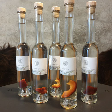 Nicht nur schön anzusehen, auch ein Gaumengenuss mit dem Birnenschnitz in der Flasche.